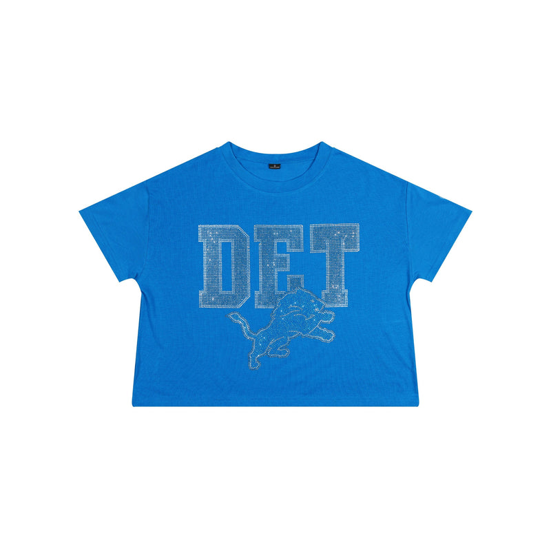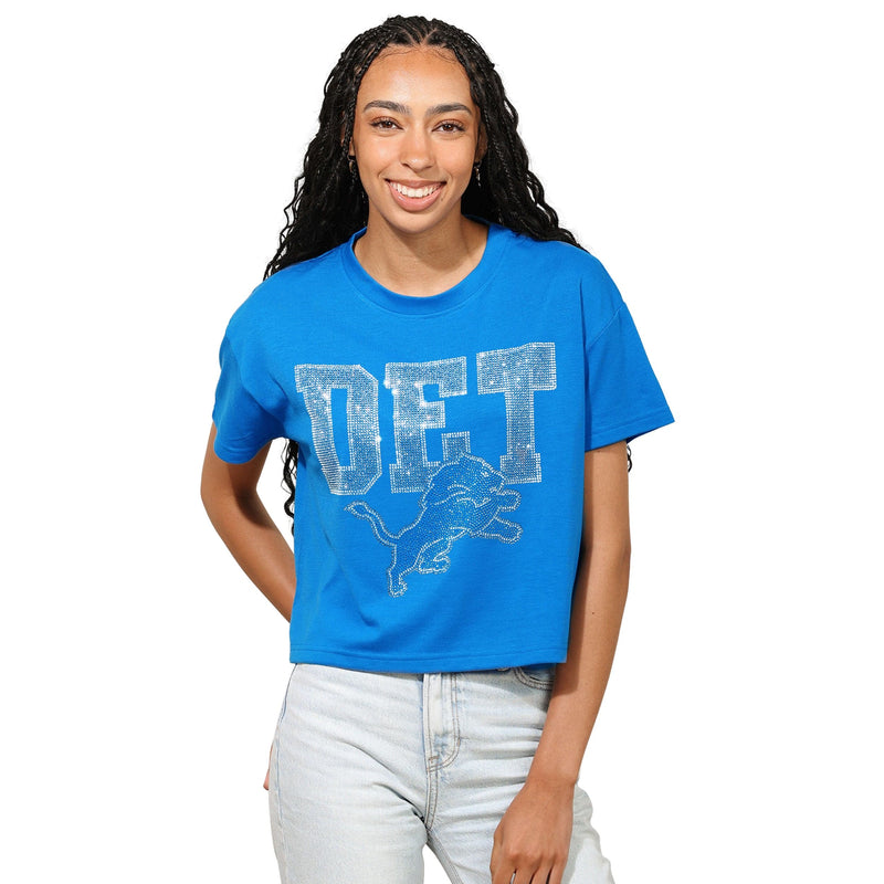 Detroit Lions NFL Womens Rhinestone Logo Crop Top