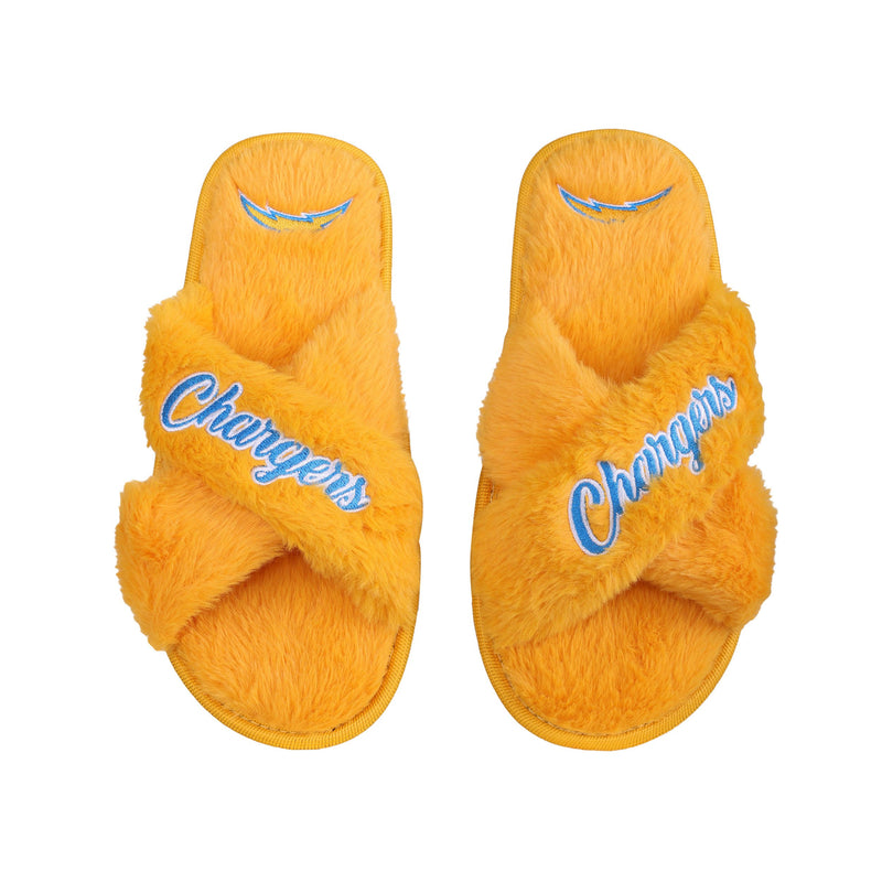 Los Angeles Chargers NFL Womens Script Wordmark Fur Cross Slide