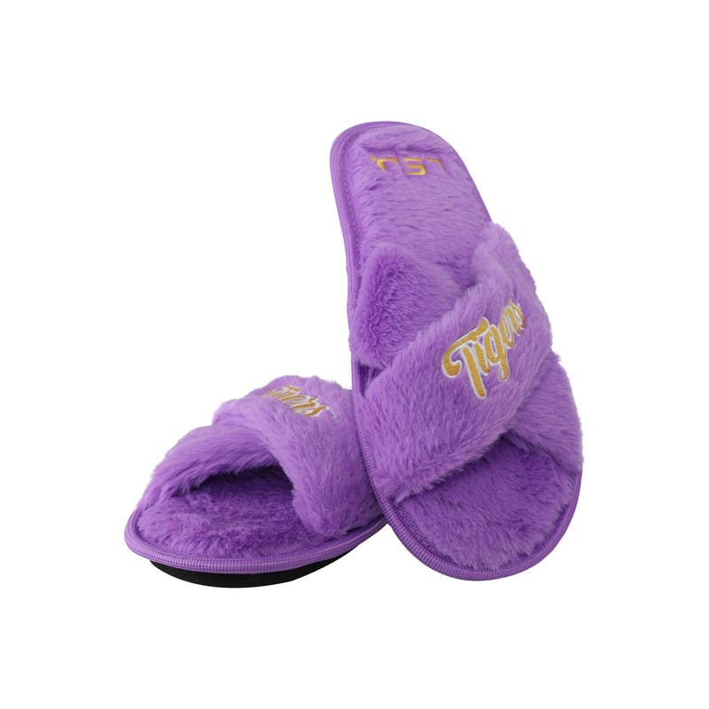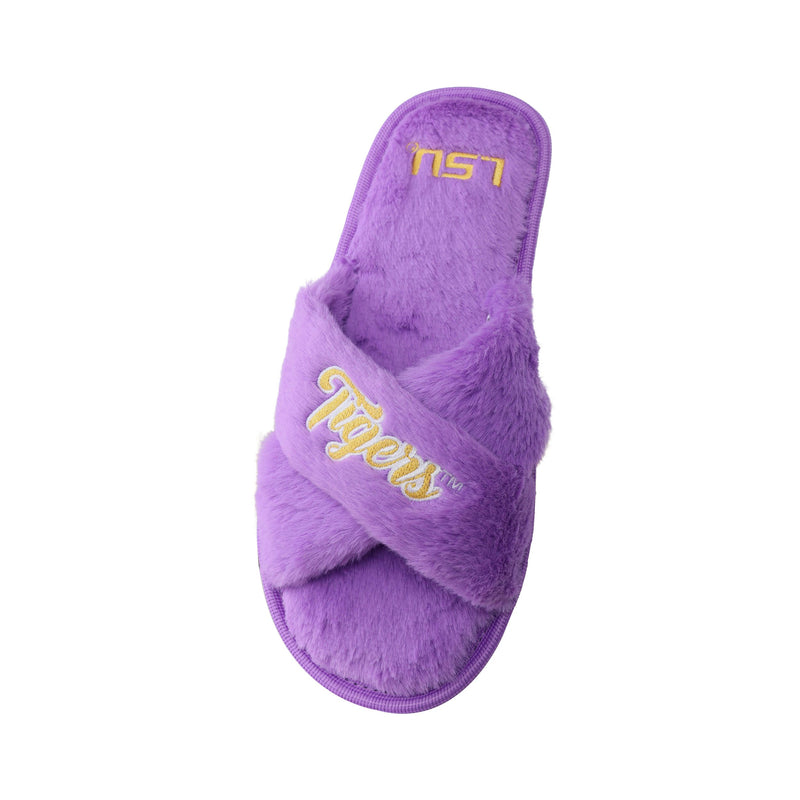 LSU Tigers NCAA Womens Script Wordmark Fur Cross Slide