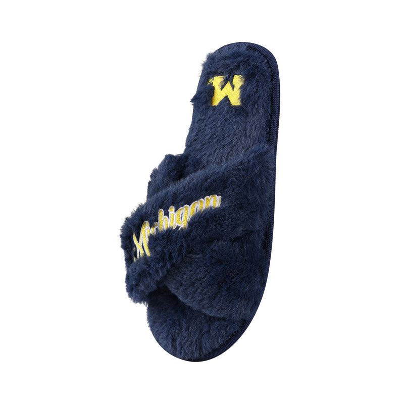 Michigan Wolverines NCAA Womens Script Wordmark Fur Cross Slide