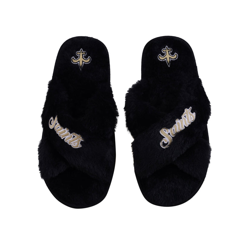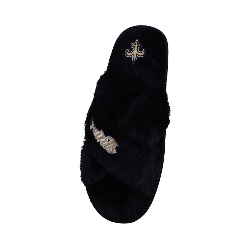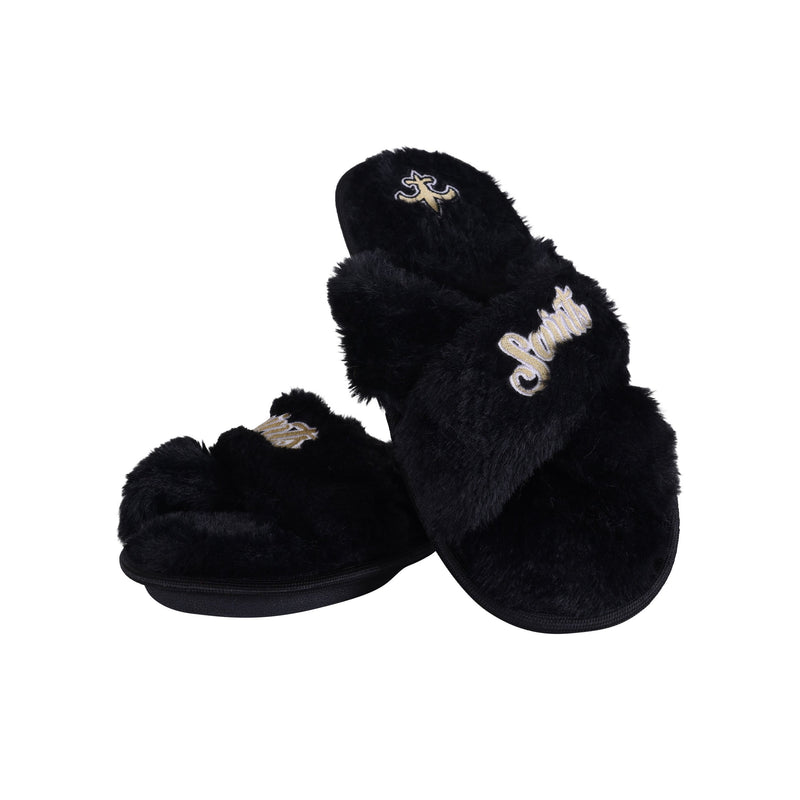 New Orleans Saints NFL Womens Script Wordmark Fur Cross Slide