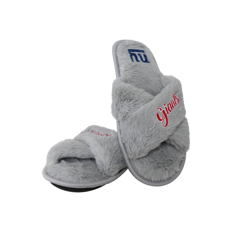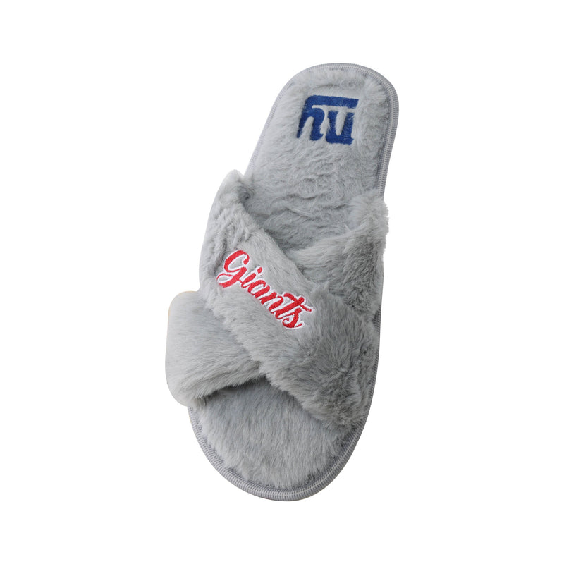 New York Giants NFL Womens Script Wordmark Fur Cross Slide