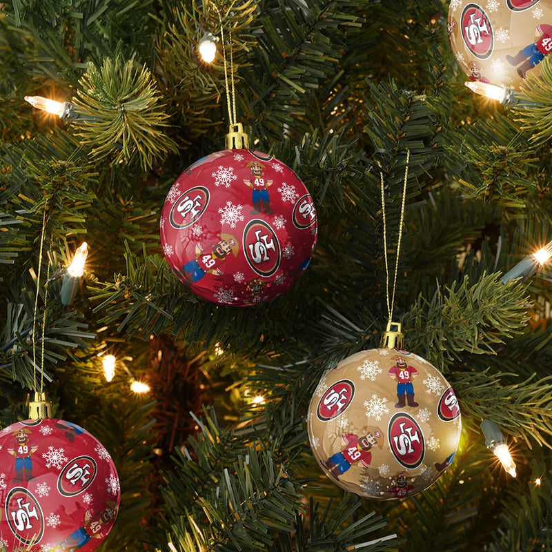 San Francisco 49ers NFL 4 Pack Ball Mascot Ornament Set