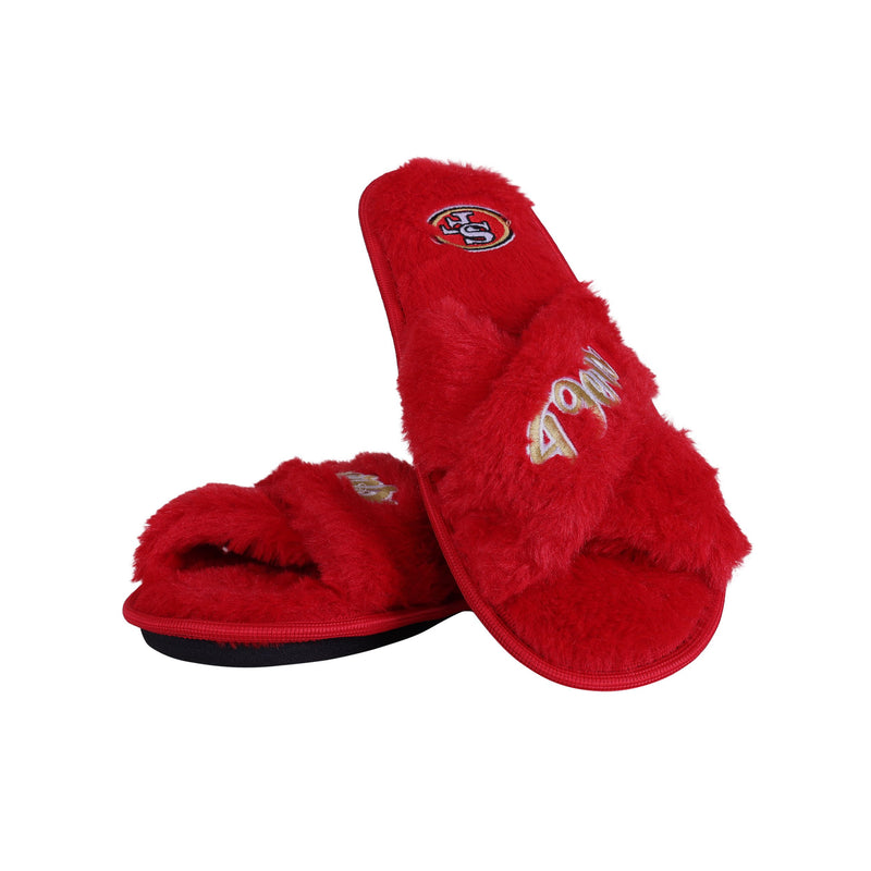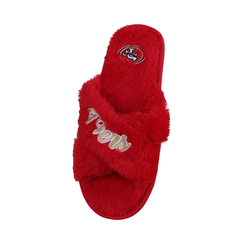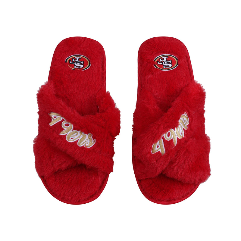 San Francisco 49ers NFL Womens Script Wordmark Fur Cross Slide