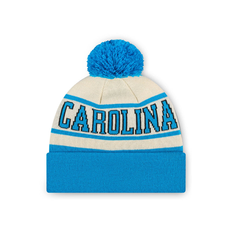 Carolina Panthers NFL Heritage Stripe Primary Logo Pom Beanie