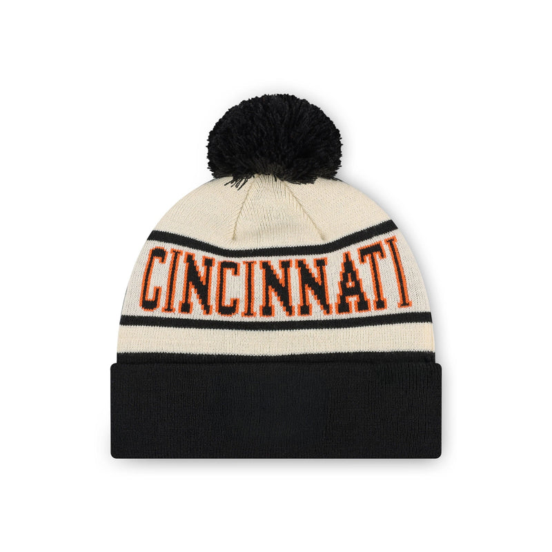Cincinnati Bengals NFL Heritage Stripe Primary Logo Pom Beanie