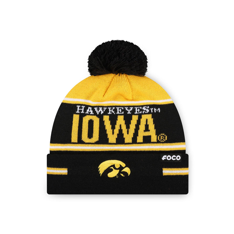 Iowa Hawkeyes NCAA Big Wordmark Stripe Pom Beanie