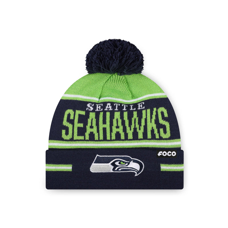 Seattle Seahawks NFL Big Wordmark Stripe Pom Beanie