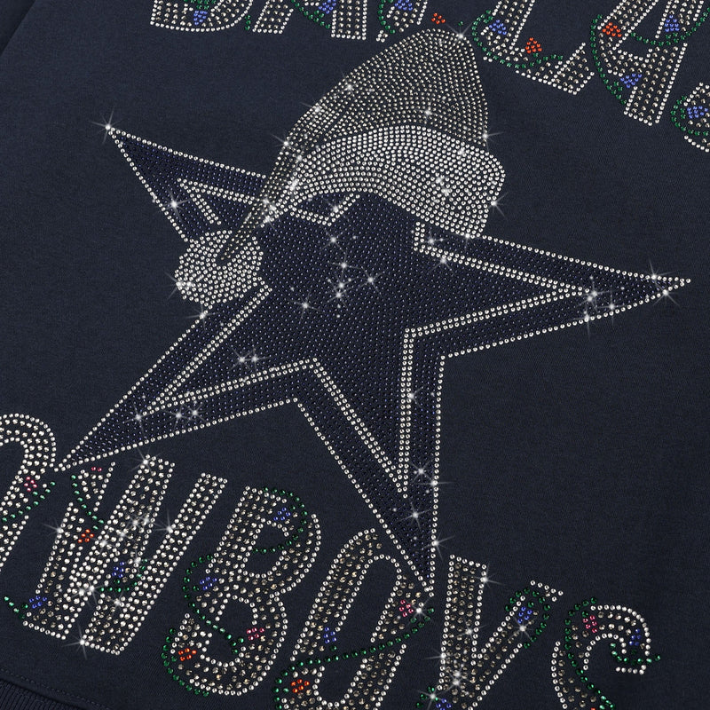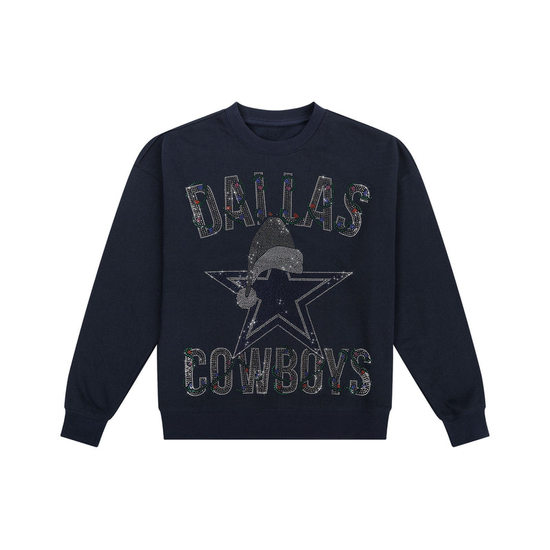 Dallas Cowboys NFL Womens Rhinestone Logo Oversized Holiday Crew Neck Sweatshirt