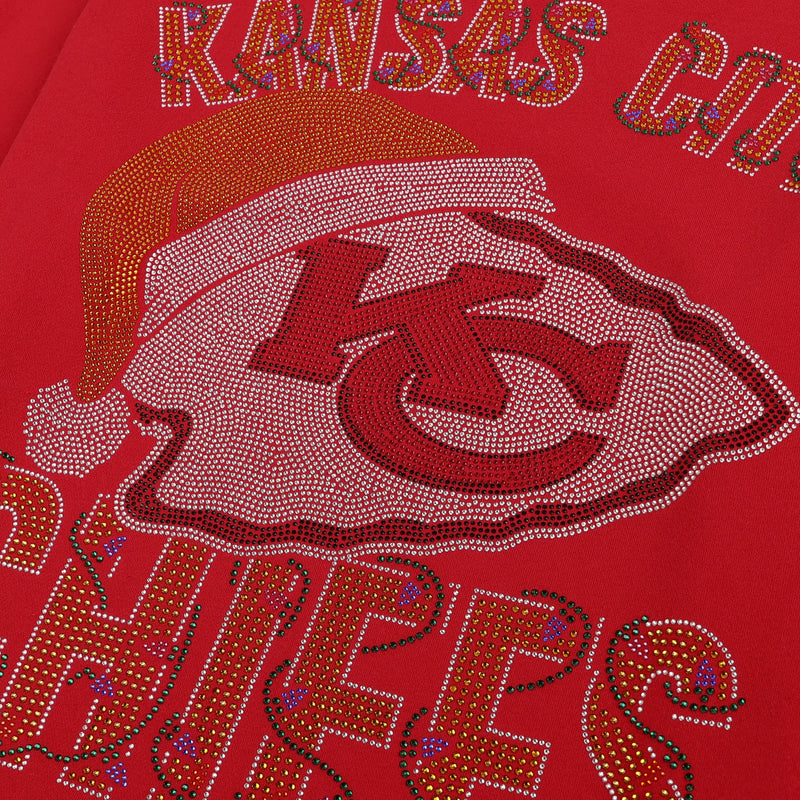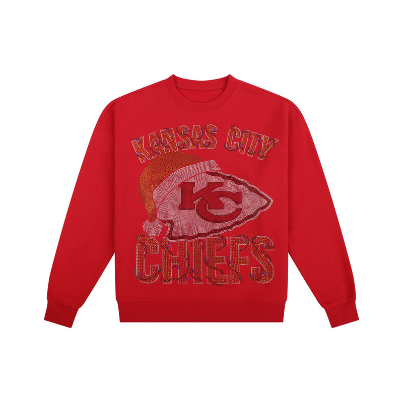 Kansas City Chiefs NFL Womens Rhinestone Logo Oversized Holiday Crew Neck Sweatshirt