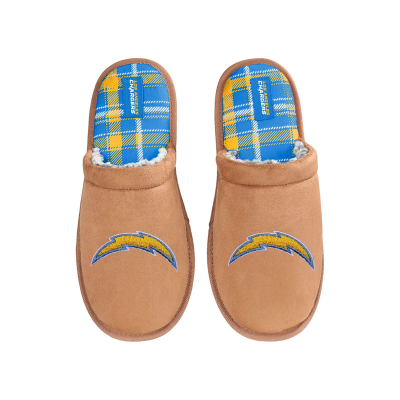 Los Angeles Chargers NFL Mens Flannel Lined Brown Suede Scuff Slipper