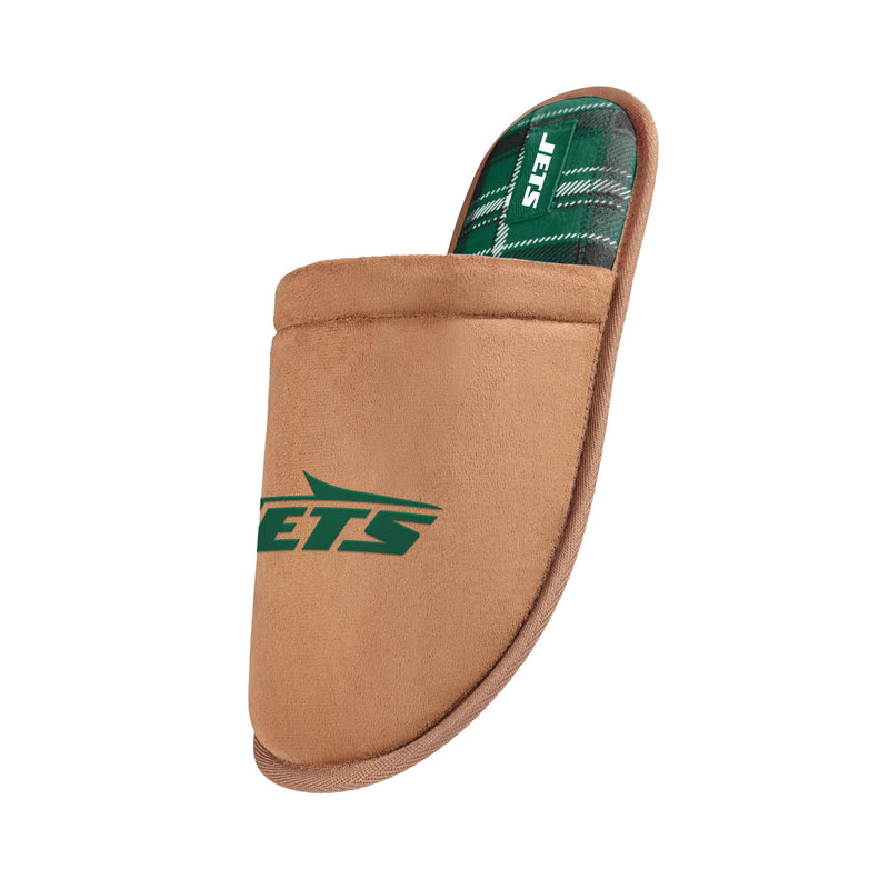 New York Jets NFL Mens Flannel Lined Brown Suede Scuff Slipper