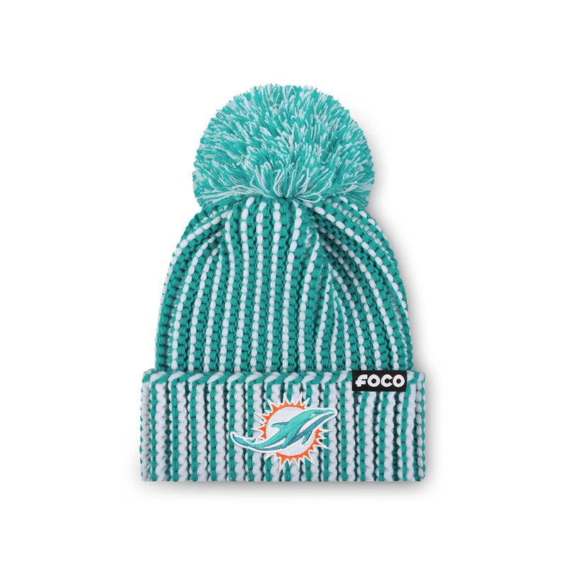 Miami Dolphins NFL Primary Logo Vertical Knit Pom Beanie