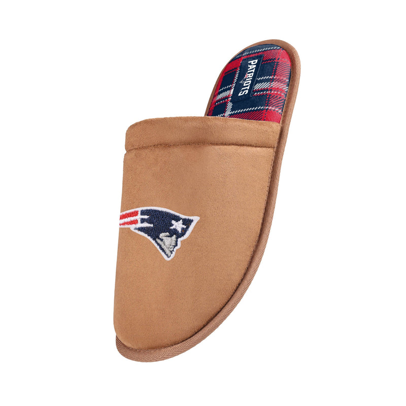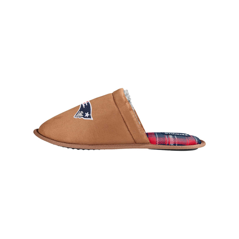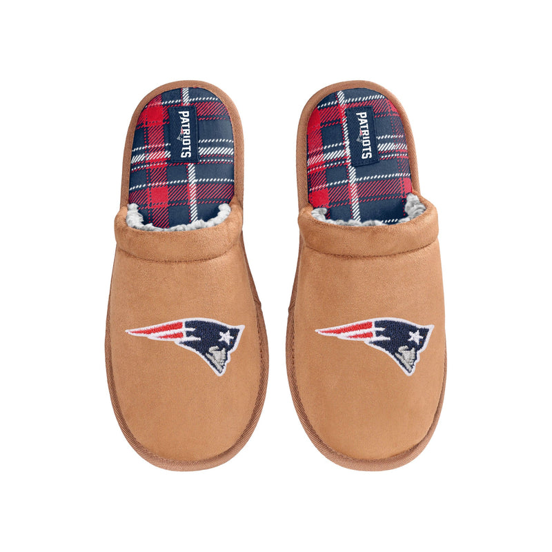 New England Patriots NFL Mens Flannel Lined Brown Suede Scuff Slipper
