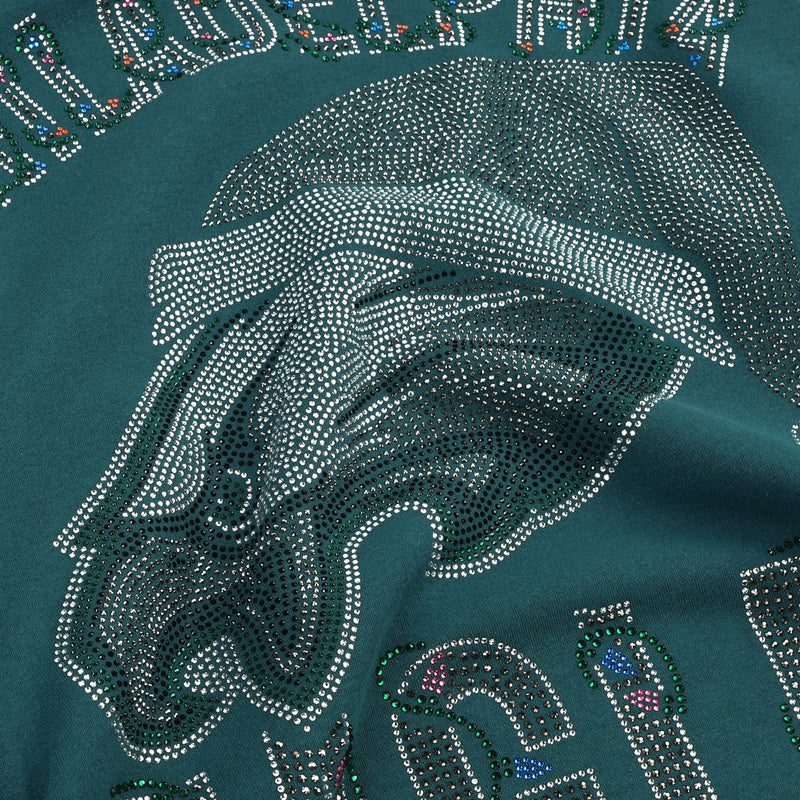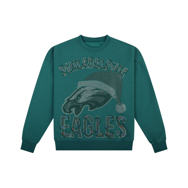 Philadelphia Eagles NFL Womens Rhinestone Logo Oversized Holiday Crew Neck Sweatshirt
