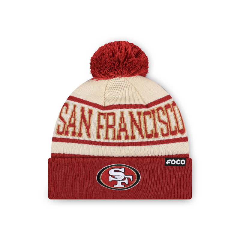 San Francisco 49ers NFL Heritage Stripe Primary Logo Pom Beanie