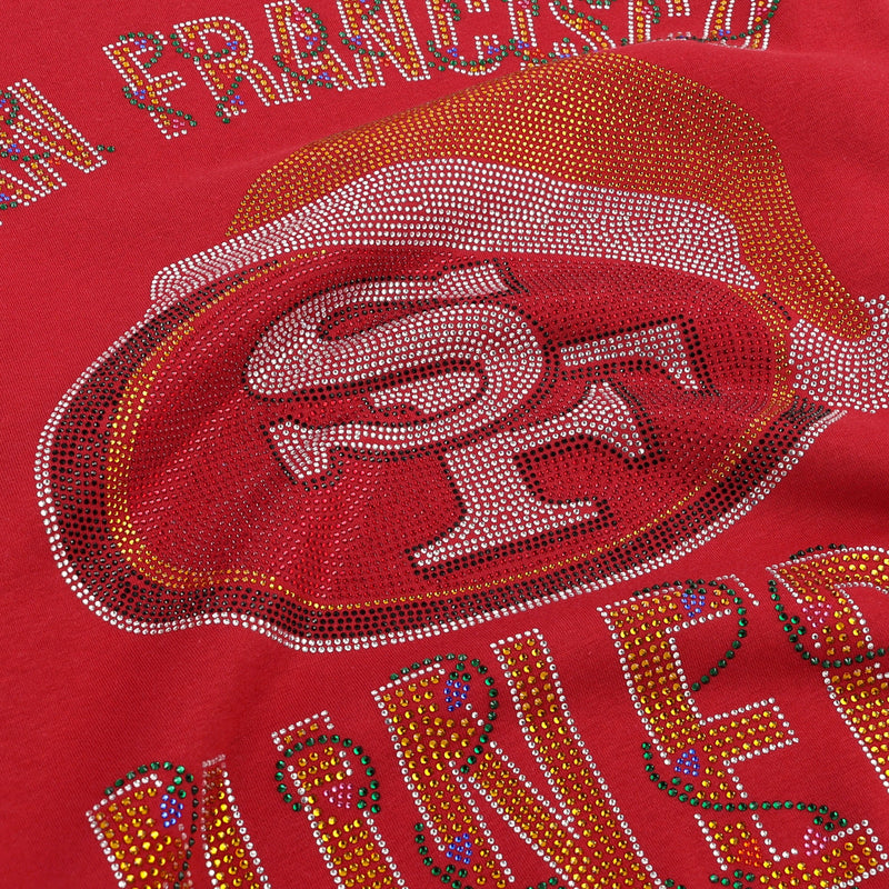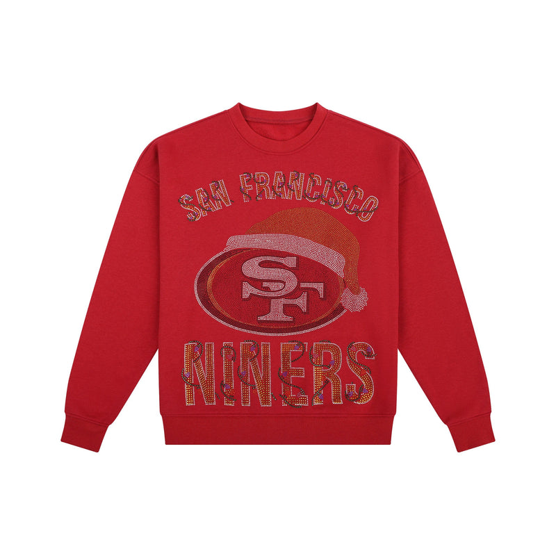 San Francisco 49ers NFL Womens Rhinestone Logo Oversized Holiday Crew Neck Sweatshirt
