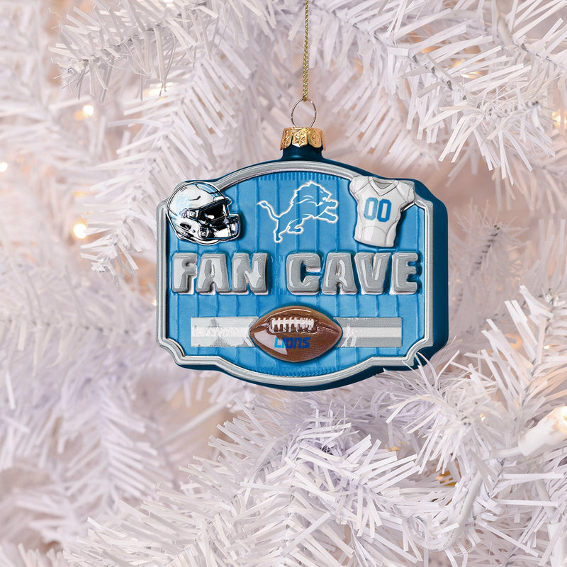 Detroit Lions NFL Blown Glass Fan Cave Ornament