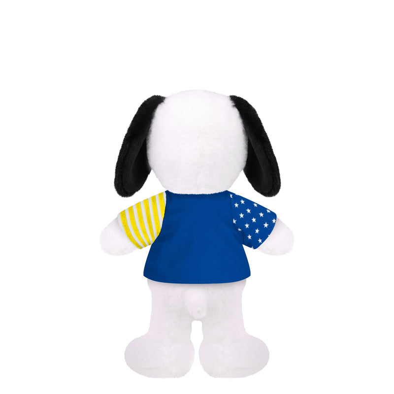 • Plush Snoopy wearing a team jersey with USA flag-inspired design details