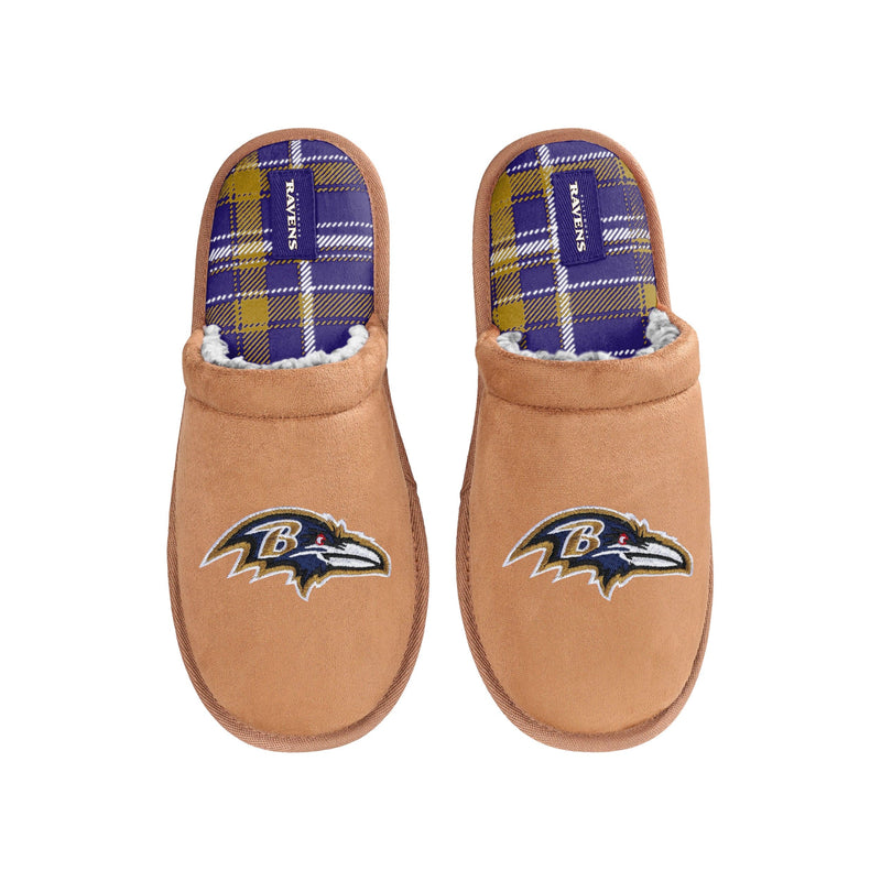 Baltimore Ravens NFL Mens Flannel Lined Brown Suede Scuff Slipper