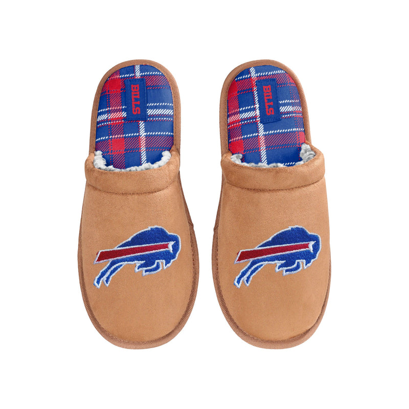 Buffalo Bills NFL Mens Flannel Lined Brown Suede Scuff Slipper