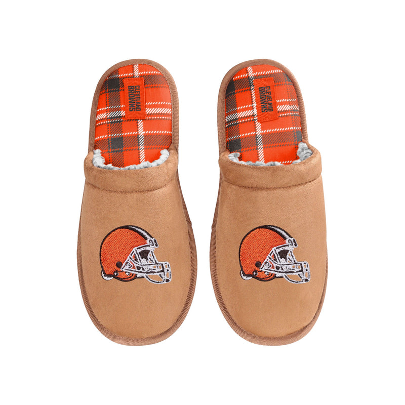 Cleveland Browns NFL Mens Flannel Lined Brown Suede Scuff Slipper