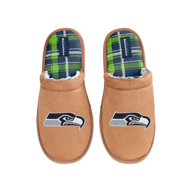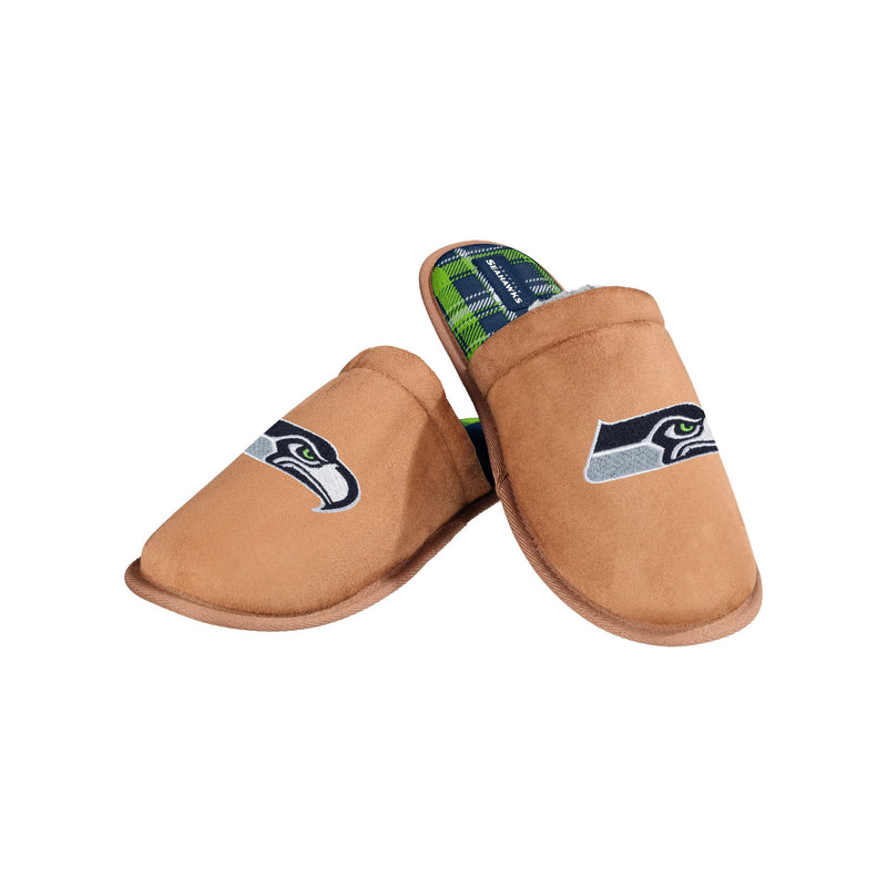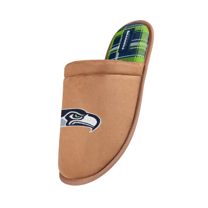 Seattle Seahawks NFL Mens Flannel Lined Brown Suede Scuff Slipper