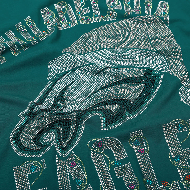 Philadelphia Eagles NFL Womens Rhinestone Logo Oversized Holiday T-Shirt