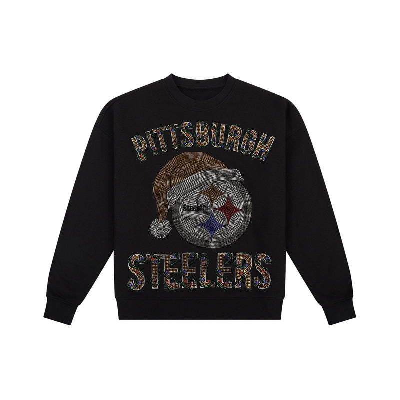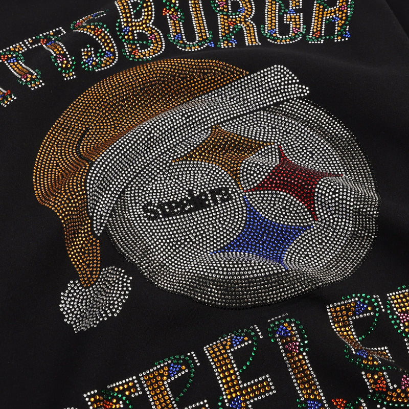 Pittsburgh Steelers NFL Womens Rhinestone Logo Oversized Holiday Crew Neck Sweatshirt