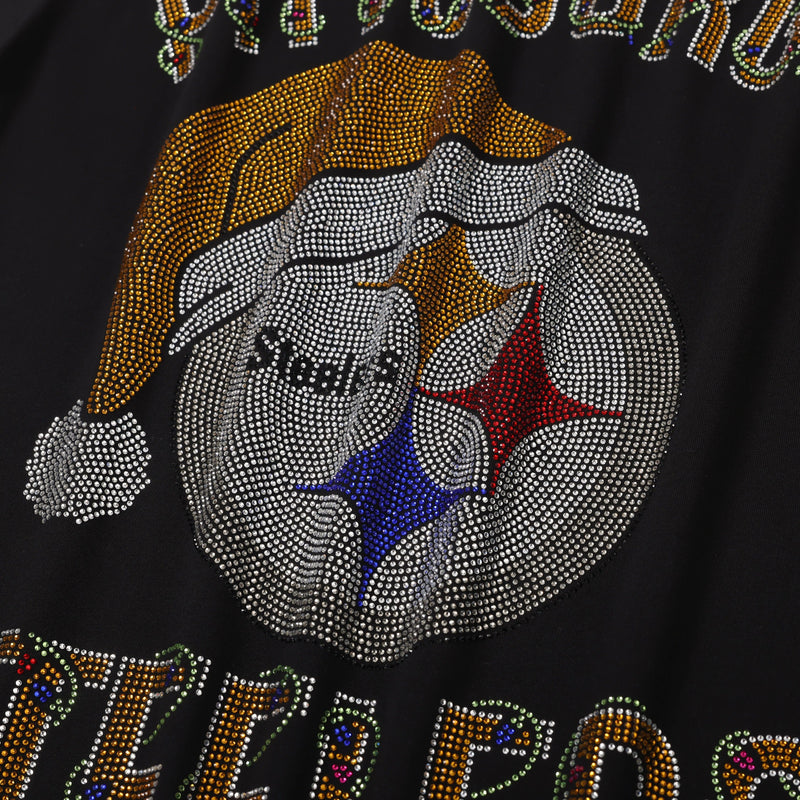 Pittsburgh Steelers NFL Womens Rhinestone Logo Oversized Holiday T-Shirt