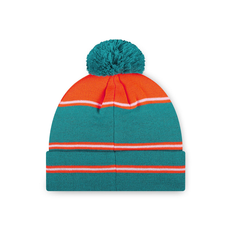 Miami Dolphins NFL Big Wordmark Stripe Pom Beanie