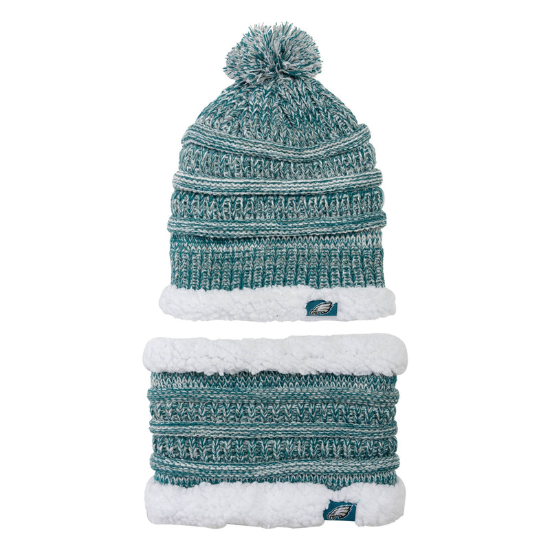 Philadelphia Eagles NFL Womens Color Wave Chunky Beanie & Gaiter Scarf Set