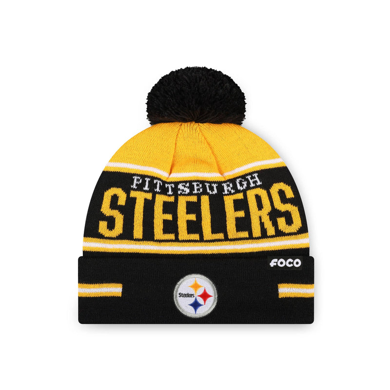 Pittsburgh Steelers NFL Big Wordmark Stripe Pom Beanie