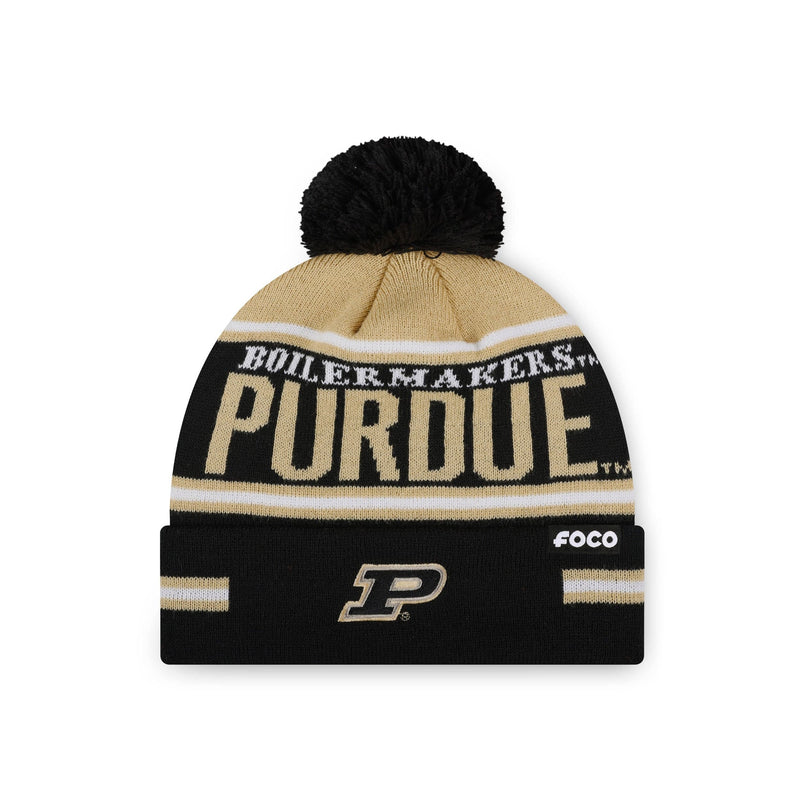 Purdue Boilermakers NCAA Big Wordmark Stripe Pom Beanie