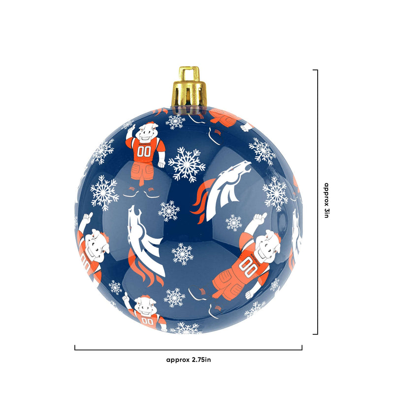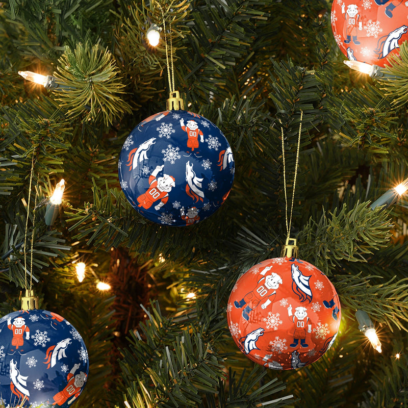 Denver Broncos NFL 4 Pack Ball Mascot Ornament Set