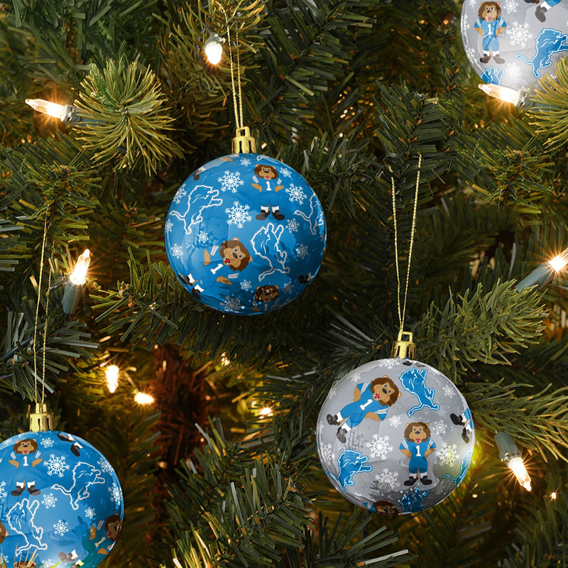 Detroit Lions NFL 4 Pack Ball Mascot Ornament Set