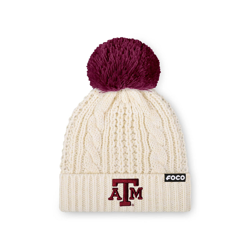 Texas A&M Aggies NCAA Womens Primary Logo White Cable Knit Pom Beanie