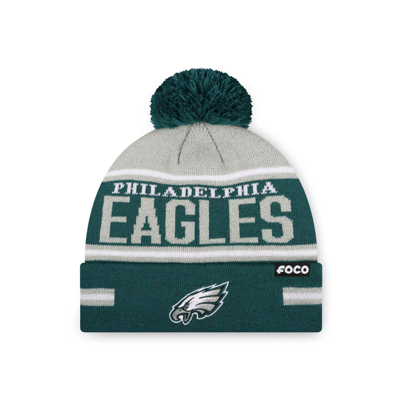 Philadelphia Eagles NFL Big Wordmark Stripe Pom Beanie