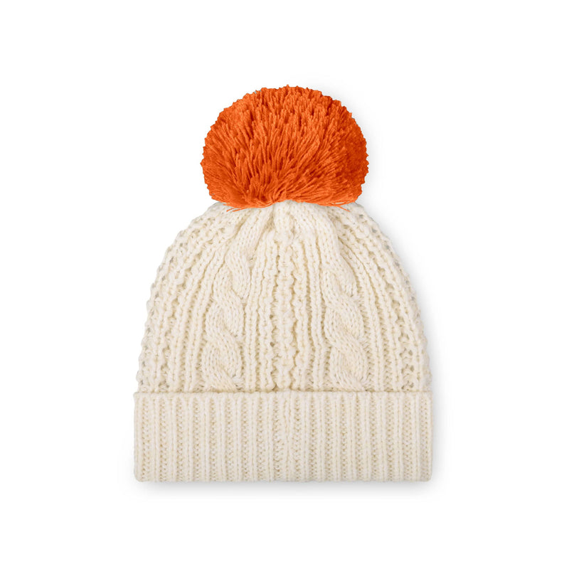 Clemson Tigers NCAA Womens Primary Logo White Cable Knit Pom Beanie