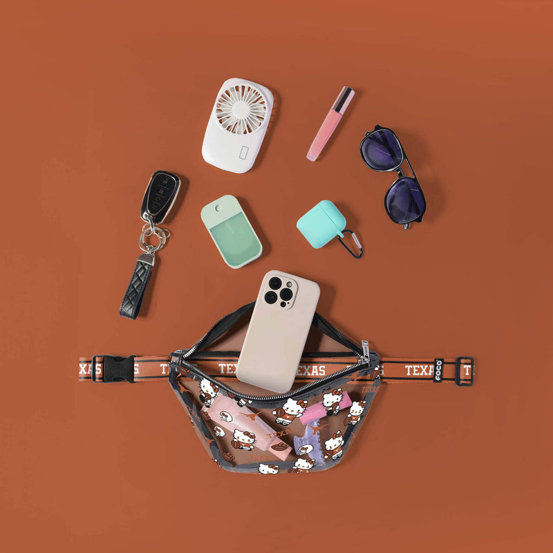 Texas Longhorns NCAA Hello Kitty® Clear Fanny Pack (PREORDER - SHIPS LATE JULY)